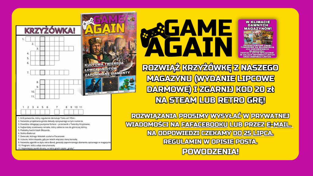 Pobierz: darmowy lipcowy numer GAME AGAIN i rozwiąż naszą krzyżówkę! Zgarnij kod 20 zł na Steam lub kod na retro‑grę! ![]()